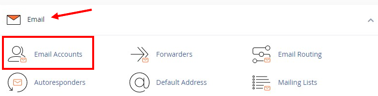 2. Scroll down to the "Email" section and click the "Email Accounts" icon.