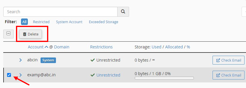 Note: Be careful when deleting email accounts as there is no way to recover the deleted data once it has been removed from the server.